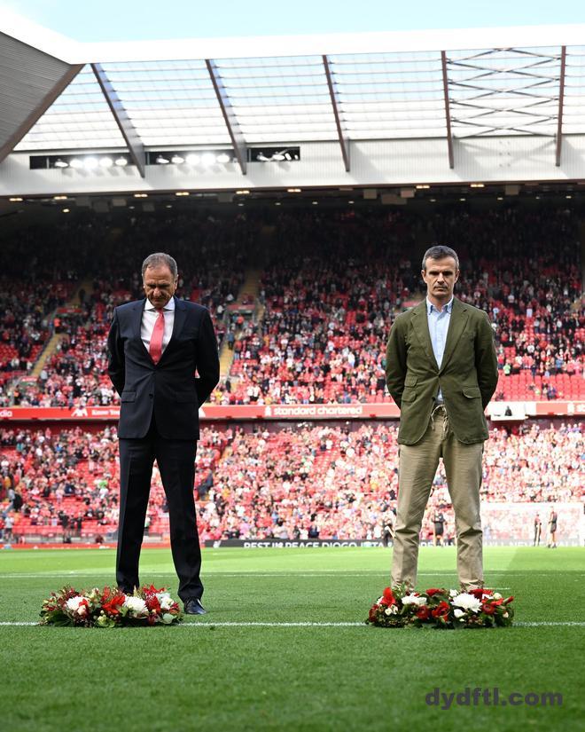 北京时间8月5日凌晨0点,利物浦在安菲尔德与毕尔巴鄂竞技进行了一场季前友谊赛。赛前,利物浦名宿菲尔-汤普森与毕尔巴鄂竞技主席乔恩乌里亚斯特为若塔献花圈。