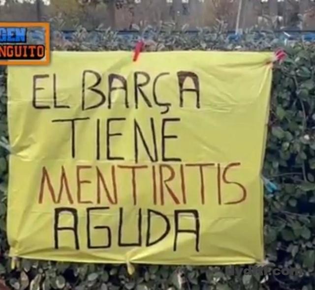 早些时候,拉波尔塔在接受采访时称“弗洛伦蒂诺有巴萨综合症”,根据西班牙六台的最新报道,当地时间本周三,有皇马球迷在巴尔德贝巴斯训练基地门框挂横幅,向拉波尔塔表示回击。