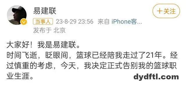 6月21日,据媒体消息,近日,央视体育频道节目预告中显示,定于6月20日18点35分的《篮球公园》中播出CBA联赛30年系列片易建联专访。当晚,该片段未如期播出。