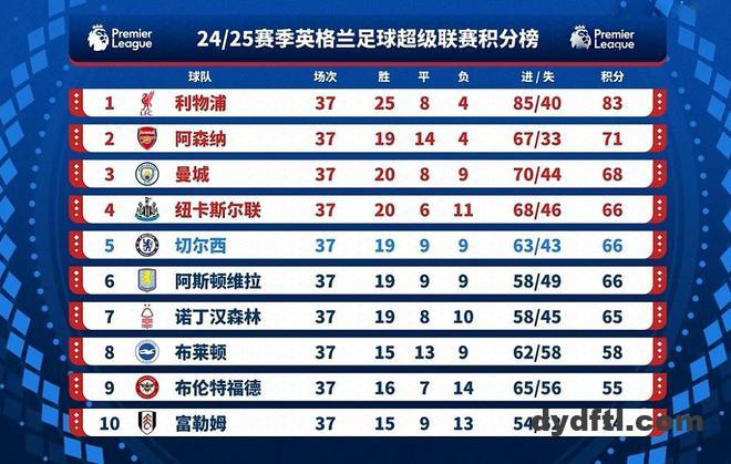英超联赛最后一轮,迎来大结局。虽然说利物浦已经早早取得了冠军,但是多支豪门争夺前五,力拼下赛季欧冠资格的较量。本轮开始之前,曼城、纽卡斯尔联、切尔西、阿斯顿维拉和诺丁汉森林,这五支球队争夺最后的三个席位。由于纽卡、切尔西和维拉,同积66分,但是维拉在净胜球上大幅度落后,所以只要切尔西和纽卡斯尔联赢球,那么将铁定锁定前五。