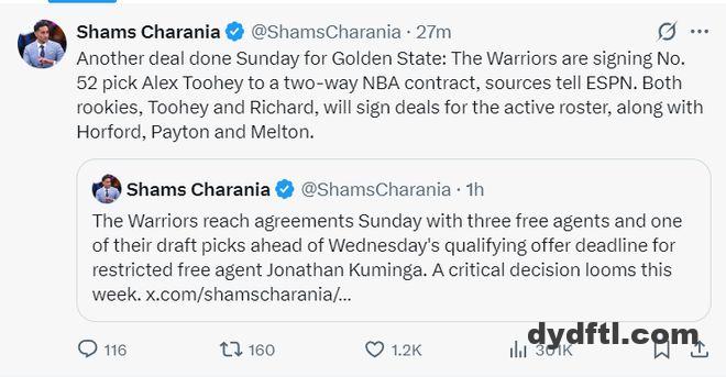 北京时间9月29日,勇士确定将连签5人,包括霍福德、库明加、小佩顿以及新秀威尔-理查德和图希。这些签约预计都将在库明加的受限制自由球员问题解决后正式官宣。随后,薪金专家Marks给出了勇士签约后的解析。