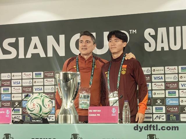 懂球帝记者 现场报道,北京时间1月23日,U23亚洲杯决赛中国vs日本的赛前新闻发布会在吉达阿卜杜拉-费萨尔王子体育场进行。中国队主教练安东尼奥携球员胡荷韬出席。