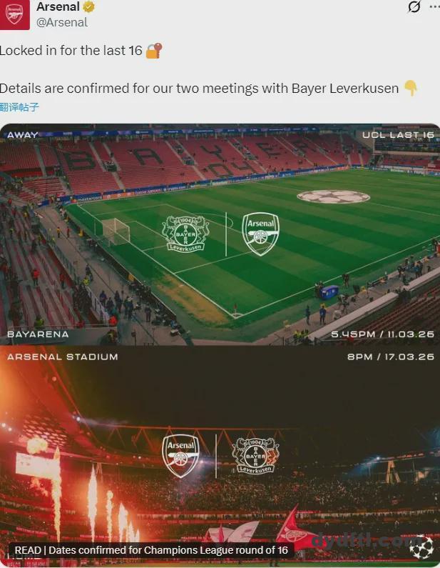 官方:阿森纳将在欧冠八分之一决赛中对阵勒沃库森。 两回合比赛阿森纳先客后主,枪手将在3月11日周三前往德国踢首 […]