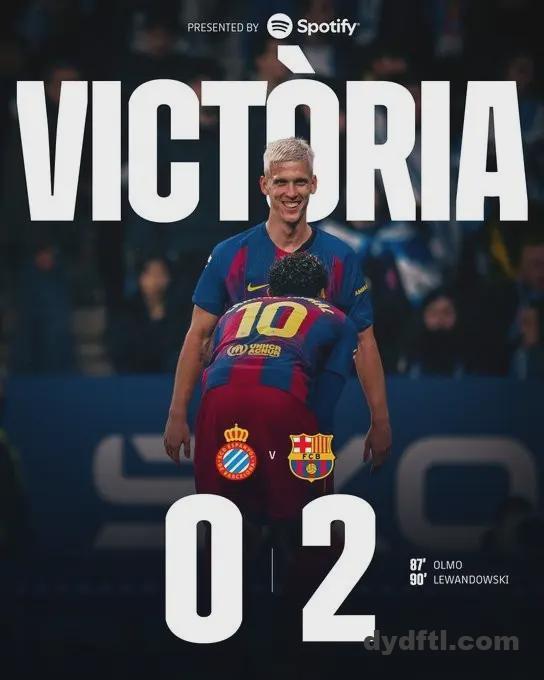 2025-26赛季西甲联赛第18轮上演加泰罗尼亚德比。领头羊巴塞罗那客战西班牙人。全场比赛,客场作战的巴萨凭借奥尔莫和莱万各入一球,最终巴萨客场2-0击败西班牙人。
