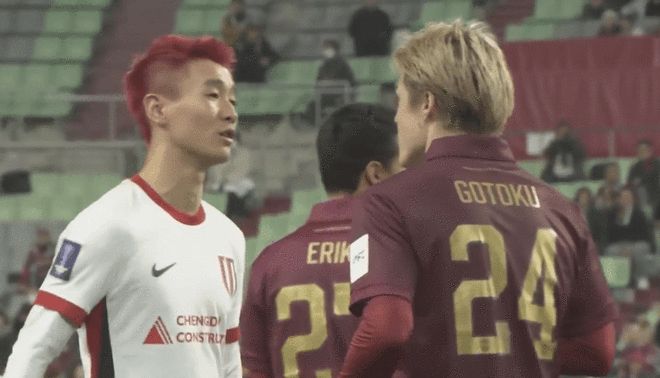 在2025-26赛季亚冠精英联赛第6轮,成都蓉城客场对阵神户胜利船。两队上半场以1比1的比分战平,韦世豪则与酒井高德发生了冲突。