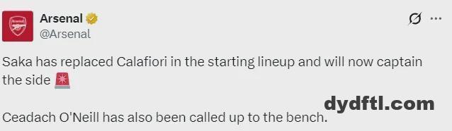 阿森纳官推确认,萨卡取代卡拉菲奥里进入了首发阵容,并且担任队长,小将奥尼尔进入了替补席。 本来卡拉菲奥里是首发 […]