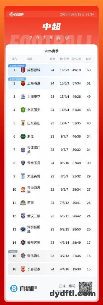 直播吧09月12日讯 中超第24轮先赛3场,海港4-2玉昆,蓉城1-0亚泰,国安0-2河南。