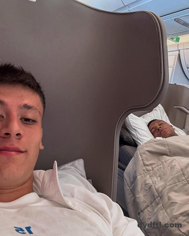 当地时间10月6日,皇马中场居莱尔在社交媒体晒出多张照片,其中一张是姆巴佩在飞机上睡觉的照片。