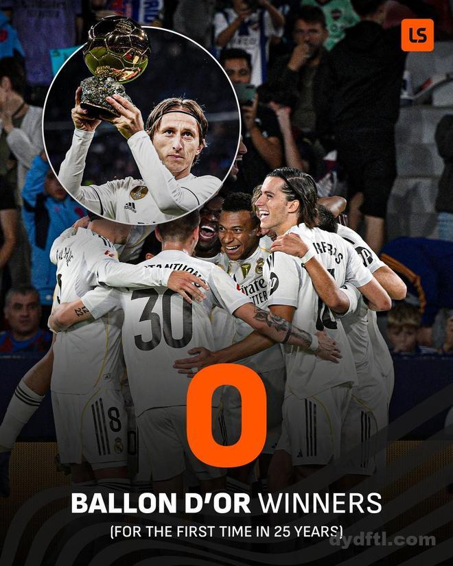 足球数据媒体LiveScore发文:你知道吗?皇马自2000年以来首次单赛季队内没有金球奖得主。