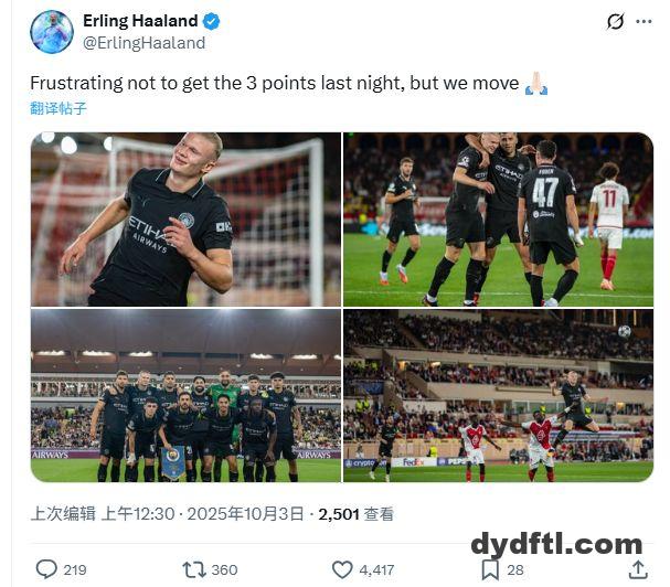 雷速体育10月3日讯 曼城在第二轮欧冠比赛中2-2战平摩纳哥,被对手90分钟点射绝平。哈兰德完成梅开二度难救主 […]