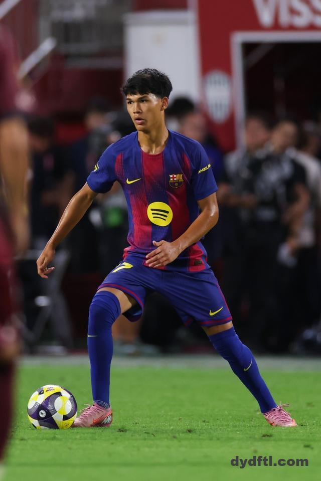 直播吧09月29日讯 西甲第7轮,巴塞罗那主场迎战皇家社会,赛前,亚马尔向主场球迷展示科帕奖奖杯。