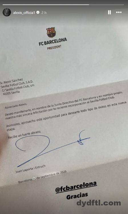 北京时间9月23日,桑切斯在社交媒体上晒出了巴萨发给自己的祝贺信,其中,拉波尔塔代表俱乐部向桑切斯回到西甲表示欢迎。