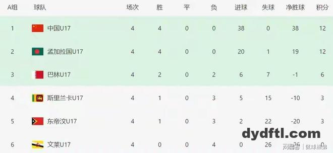 到了下半场继续火力全开,包括万项完成双响、何思凡内切打门得手、张伯霖头球破门,最终8-0狂胜斯里兰卡,收获小组赛四连胜积12分,得失球达到恐怖的38-0,同时继续依靠净胜球力压孟加拉国高居小组第一。