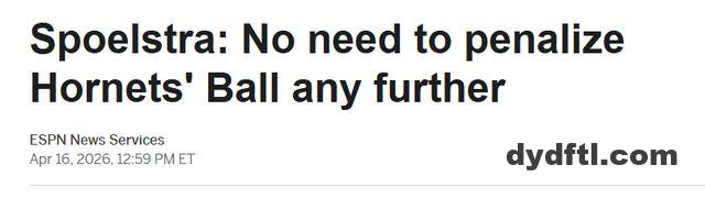 热火刚刚以126比127客场不敌黄蜂、无缘季后赛,赛后球队于今日召开赛季总结会议。斯波斯特拉在会上表示:“我认为没必要再对他进行后续追加处罚,那样并不合理。”在那场焦点对决中,阿德巴约因摔倒时被鲍尔拉扯脚踝受伤,提前长时间离场。