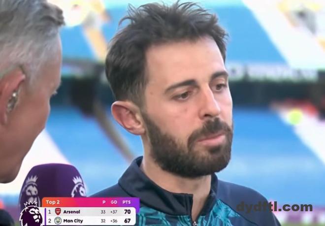 英超第33轮,曼城主场2-1击败阿森纳,赛后,曼城队长伯纳多-席尔瓦在现场接受了英超官方的采访。
