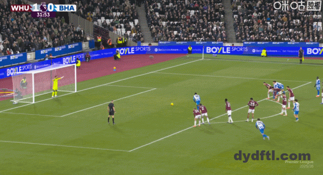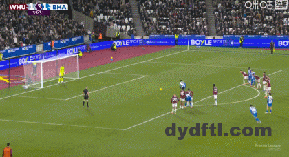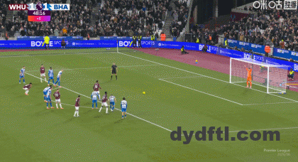 第45+4分钟,邓克手球送点,帕奎塔操刀命中,西汉姆联2-1!
