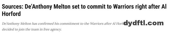 在霍福德正式承诺加盟勇士的消息传出后不久,联盟消息人士透露,自由球员梅尔顿也已确定将加盟勇士队。
