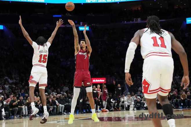 热火上一场客场116-113险胜公牛,公牛过去3场连输湖人、步行者与热火遭遇3连败,本赛季前两次交锋热火均客场战胜公牛。本场热火缺少鲍威尔、希罗、米切尔与罗齐尔,公牛缺少吉迪、怀特、武切维奇等。首节前4分半钟热火3-12落后,热火连追5分,公牛连得4分。热火持续反扑追到17-20落后,卡特三分命中,维金斯三分回敬,公牛内外开花扩大9分优势。热火再追3分,首节结束热火25-31落后公牛。首节公牛24中12,其中三分11中4,热火26中9,其中三分12中3。