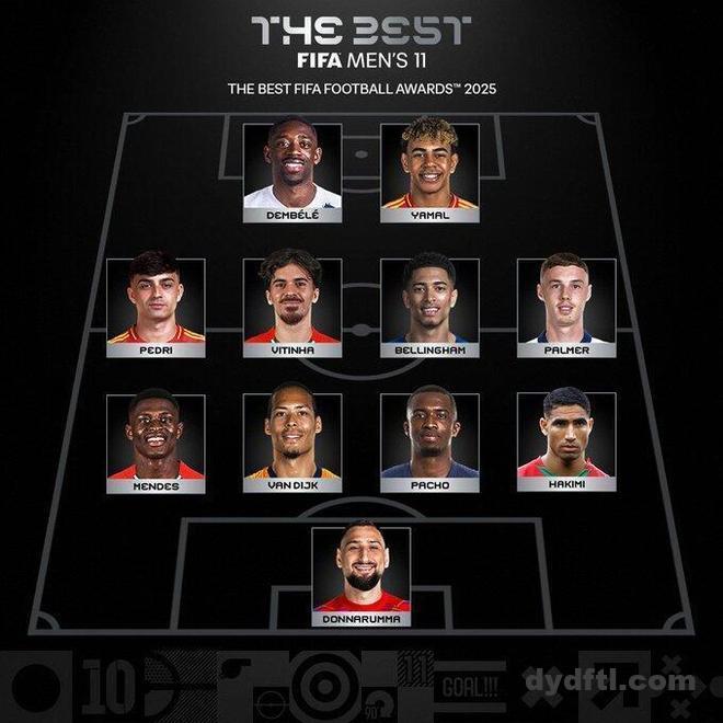 中场:帕尔默(切尔西)、贝林厄姆(皇马)、维蒂尼亚(巴黎)、佩德里(巴萨)