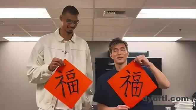 郭艾伦送给文班亚马的礼物非常合对方的胃口,后面教写毛笔写字,用“福”字来表达中国农历春节的喜庆,也就是顺理成章的事情了。因为文班亚马对中国文化非常感兴趣,他乐意学。