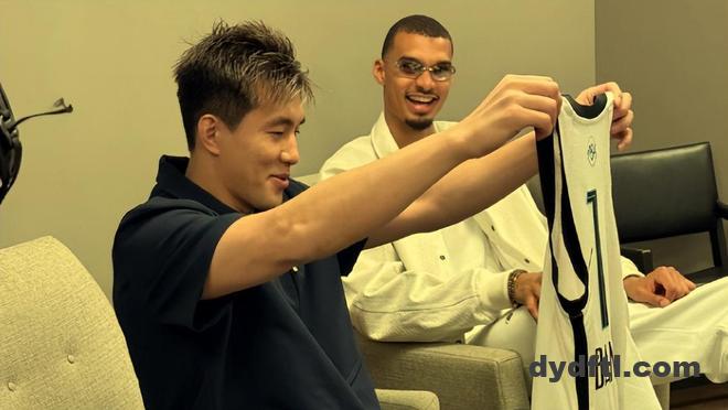 来而不往非礼也,文班亚马也回赠了郭艾伦一件他在马刺队所穿的一号战袍。只是那件球衣穿到郭艾伦身上有点像袍子,倒也挺好玩的。