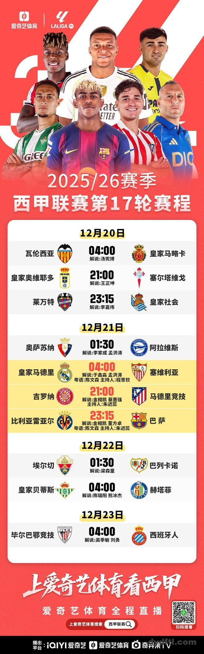 本周日凌晨4点,西甲第17轮,皇马将坐镇主场迎战塞维利亚,力争实现连胜。本场比赛,爱奇艺体育将全程直播。
