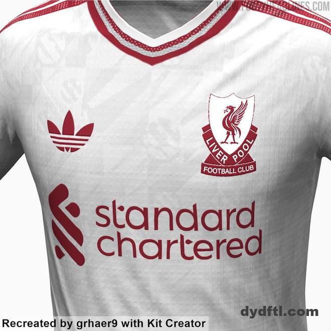 4月5日,足球装备网站Footyheadlines曝光了利物浦2026-27赛季客场球衣的设计细节。这款由阿迪达斯打造的客场球衣以白色为主色调,搭配栗红色的徽标,并在前胸采用独特的盾牌式徽章图案,灵感来源于1970年代的徽章设计。
