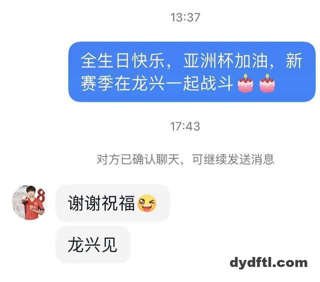 另一名中场核心李镇全,和多支球队产生联系,有球迷私信李镇全为他送上了生日祝福,并表示新赛季在龙兴一起战斗。李镇全的回复到:“谢谢祝福,龙兴见”,这一语双关让球迷可以放心了。首先李镇全新赛季还会为重庆效力,哪也不会去,冲了两个赛季才升入中超,球员对球队有感情。其次,也再一次确定明年重庆铜梁龙的主场将会放在龙兴。