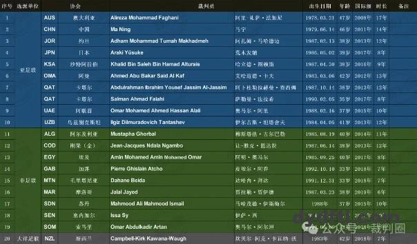 本期培训名单来自亚洲足联、非洲足联和大洋洲足联,有19个协会共20名裁判员参加,其中包括亚足联9个协会的10名裁判员、非足联9个协会的9名裁判员、大洋足联1个协会的1名裁判员。