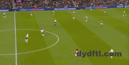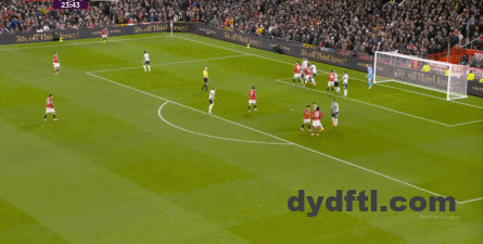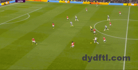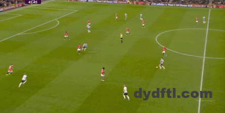 这个位置,其实指的就是阿玛德目前的队内位置,三后卫体系当中的右翼卫,但在实际上,阿玛德的无球位置也并不像翼卫,他经常因为压迫和进攻职责出现在左中卫身前,只是需要跟人和防守的时候才会回到禁区内和边线处: