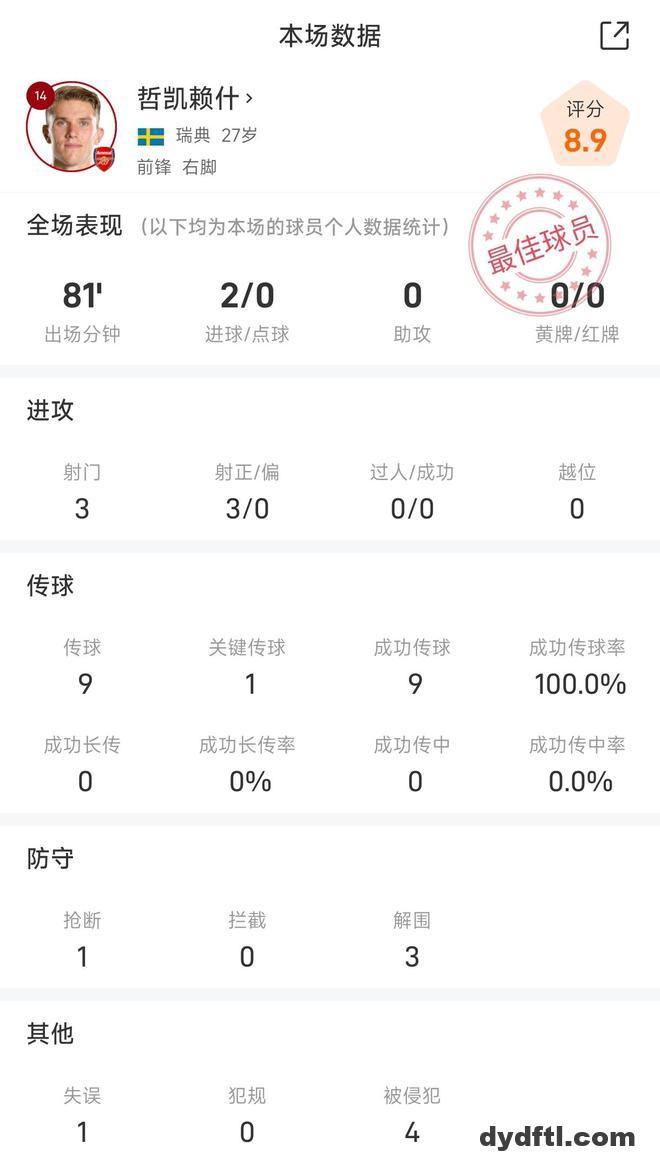 雷速体育10月22日讯 在今天凌晨结束的阿森纳主场4-0马竞的欧冠比赛中,哲凯赖什梅开二度。