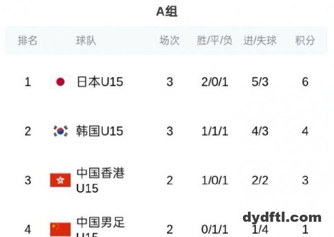 因此即便中国香港在末轮比赛中击败U15国足,积分达到6分,但因为此前他们在此前的直接对话中0-2不敌日本。因此实际上,日本即便末轮大败,依然提前锁定本届U15东亚杯冠军。