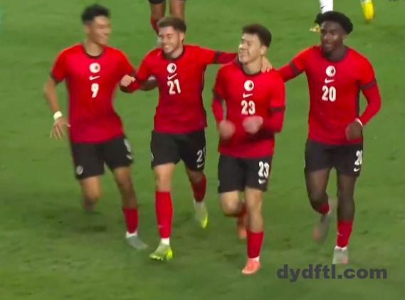 第67分钟,袁梓楠送点,艾华顿主罚点球,骗过门将打进左侧,中国香港将比分扳成2-2。