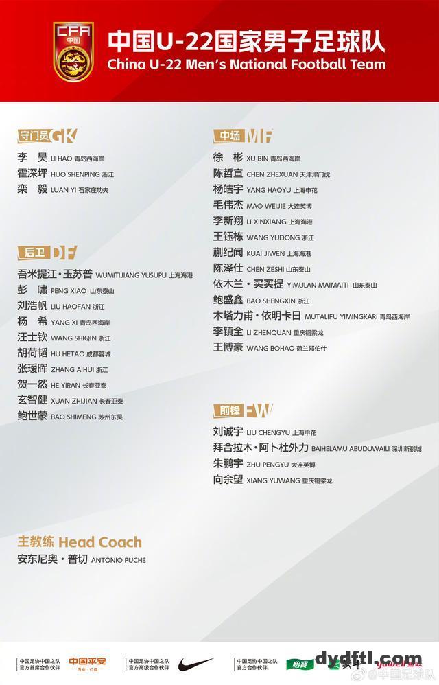 U22国足12月集训并参加U23亚洲杯大名单(29人)