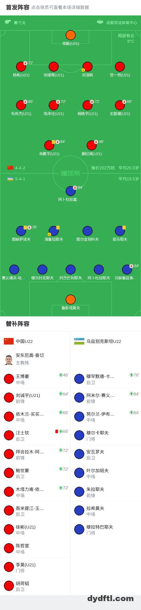 北京时间11月18日中国之队熊猫杯国际足球邀请赛 成都邀请赛 第3轮,中国U22对阵乌兹别克斯坦U22。最终比分中国U22 0–0 乌兹别克斯坦U22。