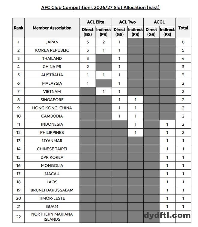 附:亚冠精英联赛参赛席位(正赛+附加赛)