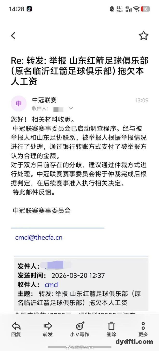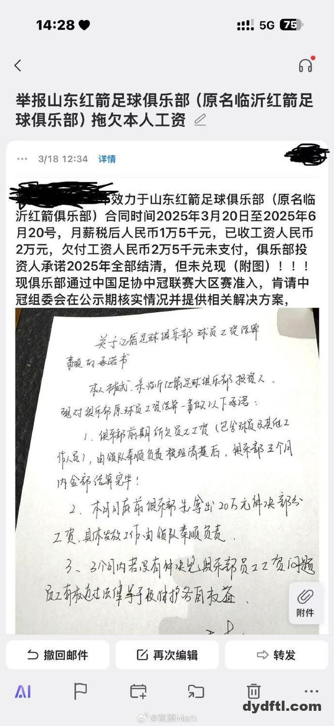 根据网传图片显示,已有多名球员向俱乐部工作人员以及管理层讨薪,也有许多讨薪球员已经向中冠联赛官方发送了电子邮件进行反馈。