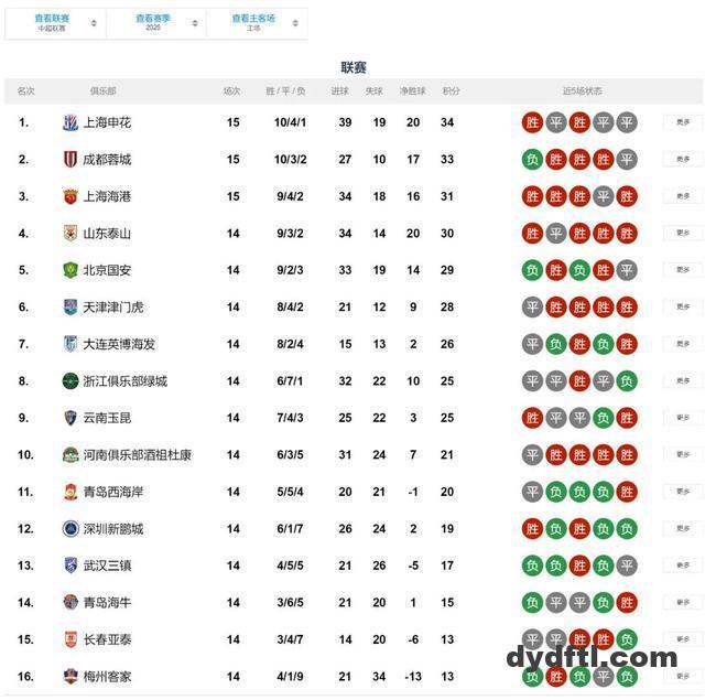 至此,申花已经结束了2025赛季联赛的全部主场比赛,成绩是10胜4平1负,拿下34分,是全中超主场成绩最好的。不过,令申花遗憾的是,球队在主场的唯一一场失利恰恰是输给了海港。