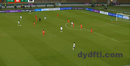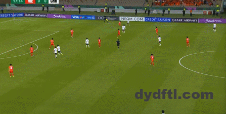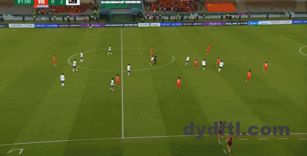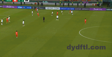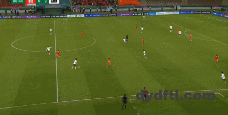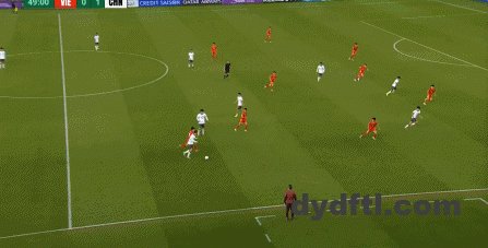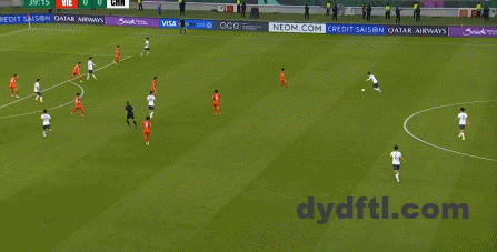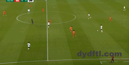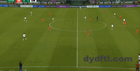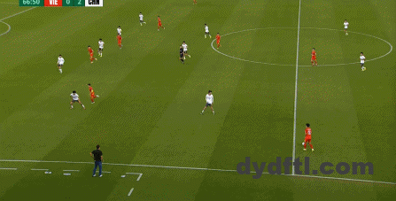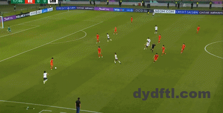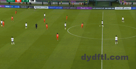 到了另外一边的二防二场景里,越南队进行换位,但右翼卫杨希在兼顾位置的同时,看准时机坚决前顶,便重新夺回了球权: