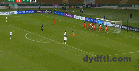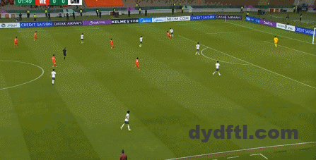 这次进攻被大脚解围后,越南队球员再次出现了防守高球时的失误,让向余望完成了带球向前和起脚攻门: