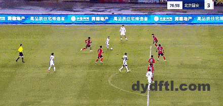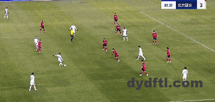 第77分钟,法比奥禁区中路无私分球,禁区右侧的张玉宁迎球推射远角得手,国安3-0领先。