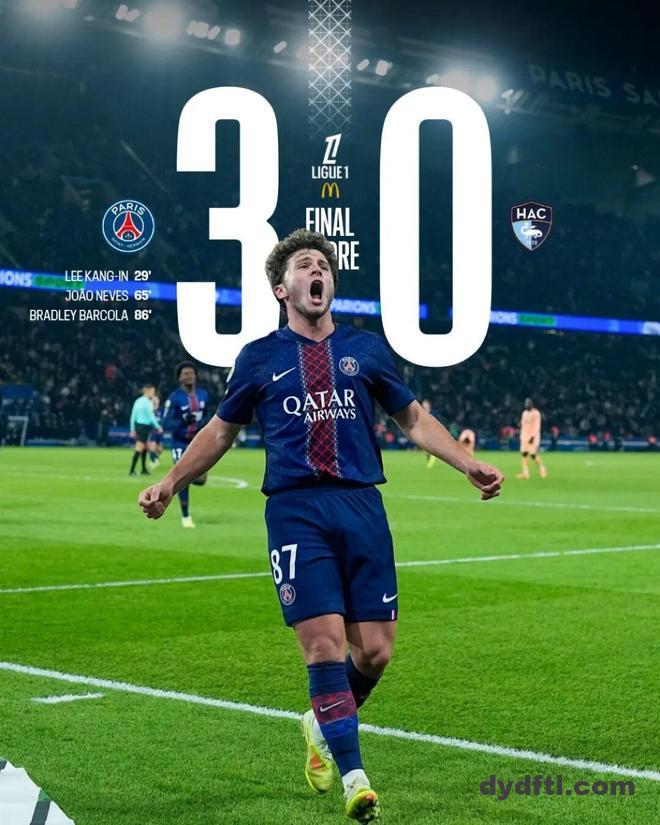 最终,我们3-0轻取勒阿弗尔,以2分的优势继续领跑法甲!
